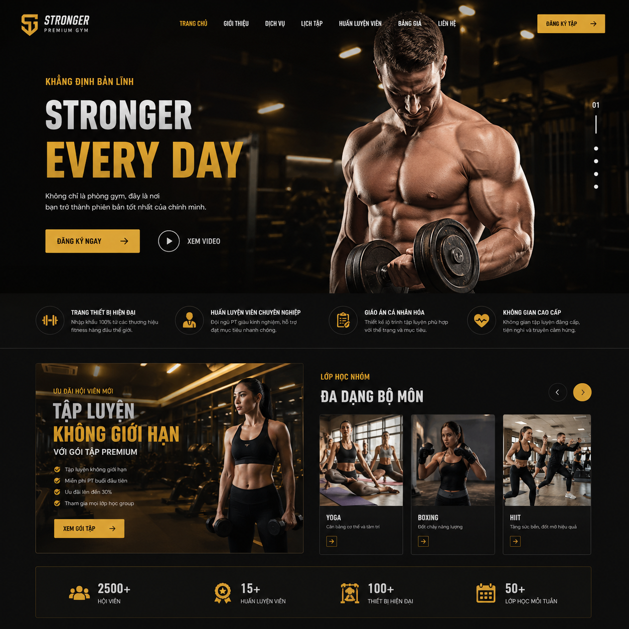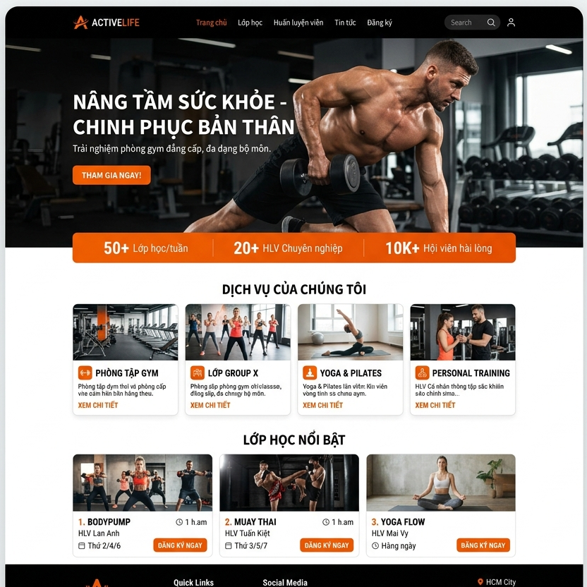 - Giao diện hiện đại, chuẩn UX/UI cho ngành gym & thể thao