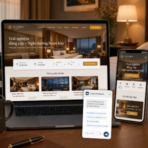 Là giải pháp xây dựng website thông minh tích hợp trí tuệ nhân tạo, giúp khách sạn, resort, công ty du lịch và dịch vụ lưu trú tối ưu vận hành, nâng cao trải nghiệm khách hàng và gia tăng doanh thu. Hệ thống hỗ trợ tự động hóa quy trình đặt phòng, tư vấn dịch vụ và triển khai marketing hiệu quả trên nền tảng số.