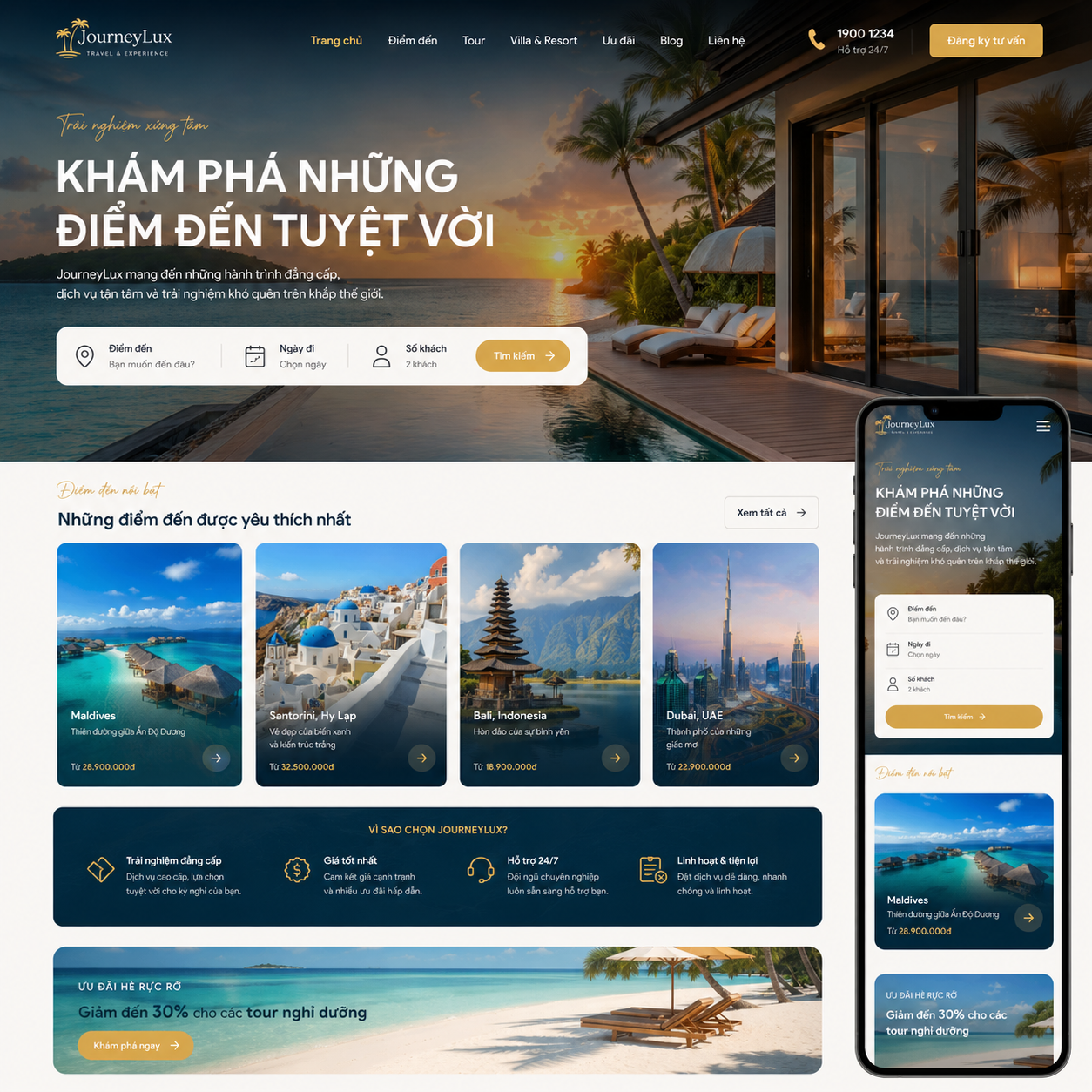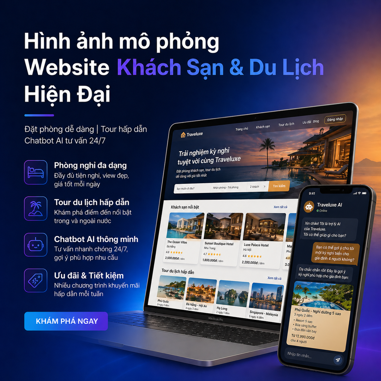 - Giao diện hiện đại, chuẩn UX/UI cho ngành khách sạn & du lịch